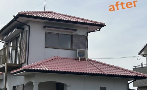 「定期的にメンテナンスを」と考えておられる施主様でした。耐久性の良い塗料を使用したいとのことでしたので、フッ素系の塗料をご提案させていただきました。工事完了後に、私と一緒に足場上から屋根を見渡し「これでしばらく安心やな」と喜んでいただけました。